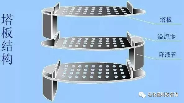 板式塔為逐級接觸式氣液傳質設備,它主要由圓柱形殼體、塔板、溢流堰、降液管及受液盤等部件構成。